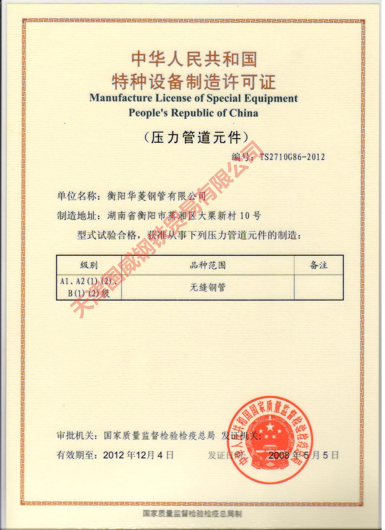 衡陽(yáng)華菱鋼管有限公司基本情況